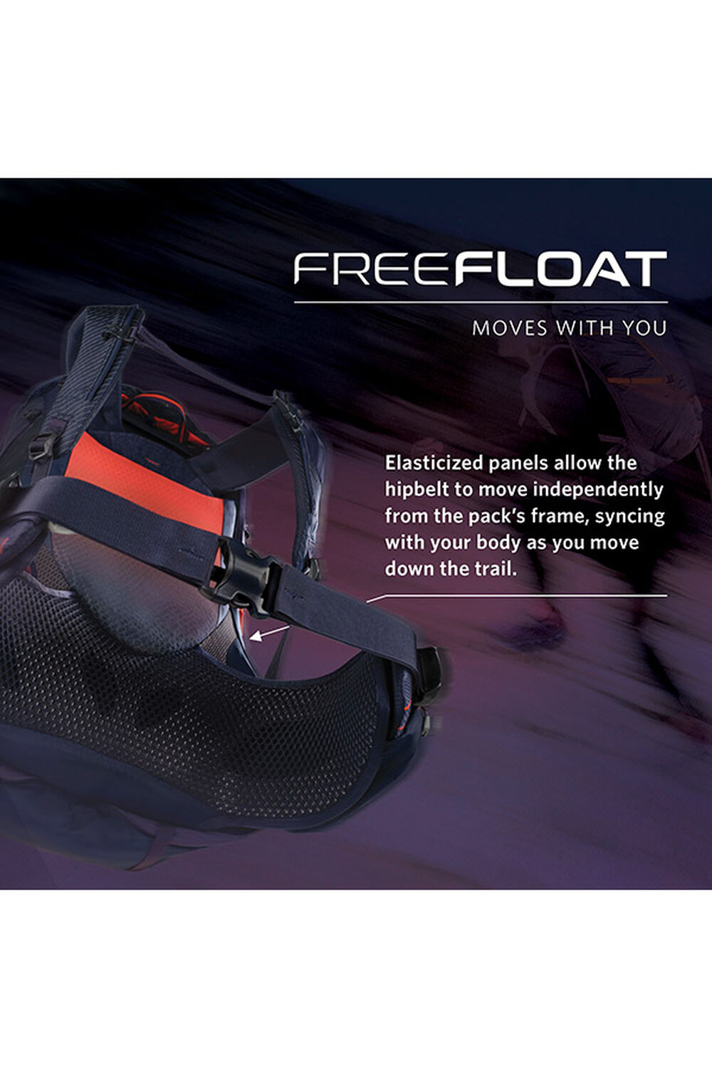 FreeFloat dynamic hipbelt flex panels that move with the natural movements of your body