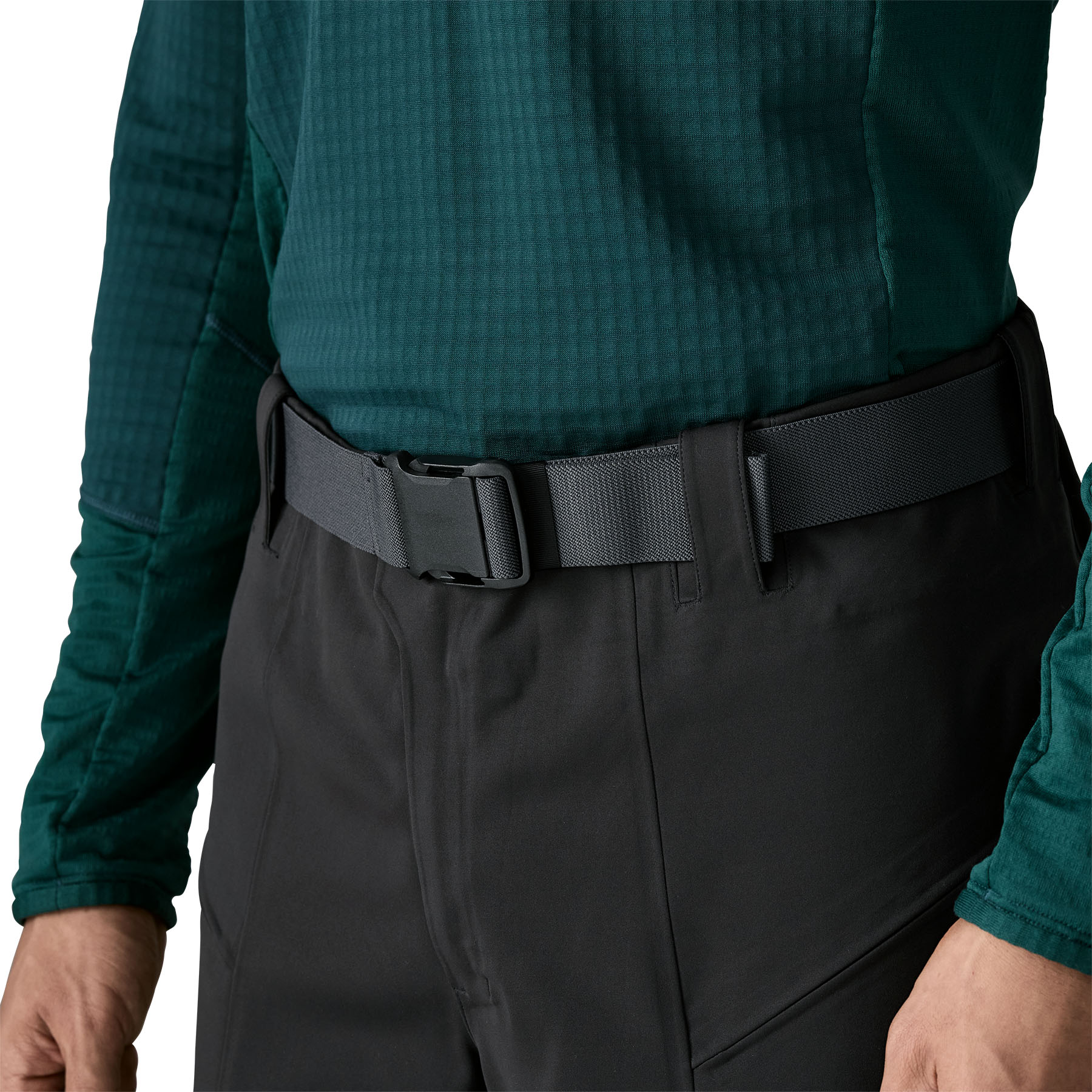 Stretchy, weather-resistant bonded soft-shell fabric is PFC-free and has a knit-grid backer that slides effortlessly over skin and baselayers